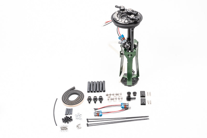 Drop-in fuel pump hanger for the Mark 4 Toyota Supra (all models). Accomodates up to three fuel pumps, including brushless pumps. Integrated jet pump for fuel scavenging. E85 compatible.