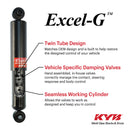 Ride Comfort may be important, but restoring a vehicles Ride Control, stability, stopping, lane change responsiveness and handling is critical. KYB Excel-G Shocks and Struts are designed for the most important performance purpose: Restoring the vehicles original capabilities. KYB is a world leading supplier of shocks and struts to new vehicle manufacturers and the Excel-G is made on the very same KYB OE assembly lines, uses the same OE quality components and is calibrated to restore original, designed performance, not change it. That has earned Excel-G the classification: OEA (Original Equipment for the Aftermarket). The KYB Excel-G is a nitrogen gas-charged, twin-tube design that includes every quality component that our global OEM products include and it is the preferred choice by professional technicians.