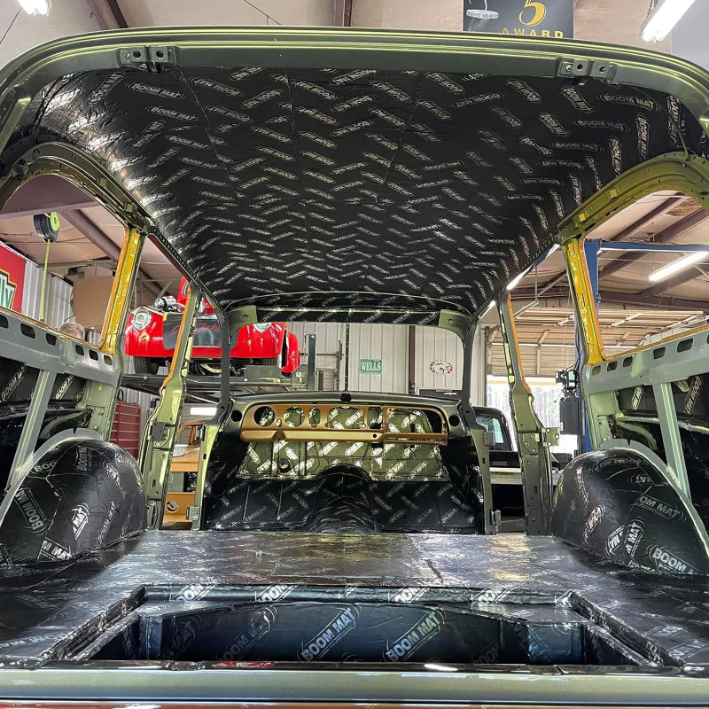 Boom Mat Damping Material solves the problem of noise, vibrations, squeaks and rattles that come from roads, stereos, engines & more. Boom Mat Vibration Damping Material is a premium quality damping material providing extreme noise damping for the most demanding commercial and sound competition applications. Interior panels vibrate and generate noise. Boom Mat stops that noise by trapping it between our thick, 4 mil aluminum stiffening top skin and the asphalt free, pure butyl, noise constraining layer. Plus worry-free no snag adhesion to any interior surface, vertical or overhead, even in the most demanding of temperature extremes. Those quality components are what makes Boom Mat Vibration Damping Material require only 25-50% coverage to get the job done. This saves weight, material cost and installation time. Easy peel plastic release liner (not a paper backing that tears) Enhances stereo performance and sound Gives you a quiet and comfortable interior Minimal prep & install time Performs in extreme temperatures Use as a first layer to control noise and dampen vibrations 2 (two) 12.5in x 24in sheets (4 sq. ft.) 2mm thick